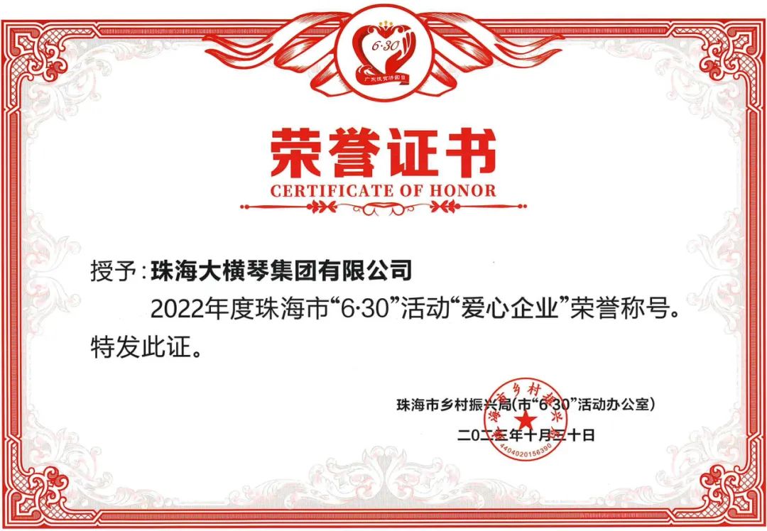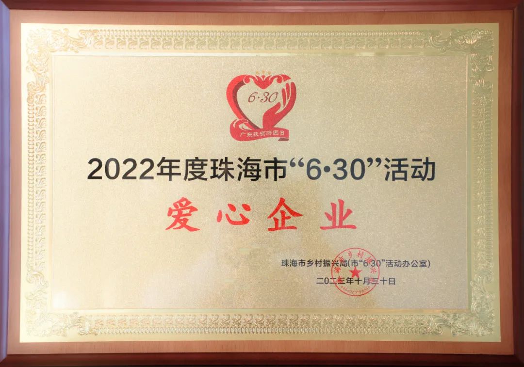 為深入貫徹黨的二十大和中央農(nóng)村工作會議精神,落實(shí)市委、市政府關(guān)于統(tǒng)籌實(shí)施鄉(xiāng)村振興戰(zhàn)略和“百縣千鎮(zhèn)萬村高質(zhì)量發(fā)展工程”工作部署,匯聚更多社會力量參與“6·30”活動,鞏固脫貧成果、助力鄉(xiāng)村振興、促進(jìn)共同富裕,根據(jù)《中共珠海市委農(nóng)村工作領(lǐng)導(dǎo)小組〈關(guān)于印發(fā)珠海市2023年“6·30”助力鄉(xiāng)村振興活動工作方案〉的通知》(珠委農(nóng)組〔2023〕6號)精神,市鄉(xiāng)村振興局(市6·30活動辦)開展2022年度珠海市“6·30”活動“愛心企業(yè)、愛心團(tuán)體、愛心個(gè)人”評選活動,向社會傳遞珠海人民樂善好施的精神品德,激發(fā)社會各界共襄善舉、助力鄉(xiāng)村振興。經(jīng)評審,珠海大橫琴集團(tuán)有限公司(以下簡稱大橫琴集團(tuán))被授予2022年度珠海市“6·30”活動“愛心企業(yè)”榮譽(yù)稱號。
