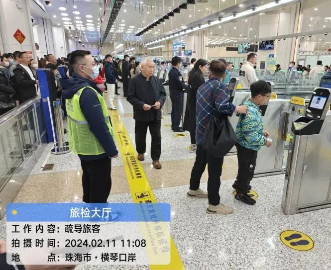 相較往年,今年春節(jié)橫琴口岸呈現(xiàn)出客流高峰提前、持續(xù)時(shí)間長、出入高峰疊加等特點(diǎn),2月11日至16日(大年初二至初七)連續(xù)6天出入單向客流均超過3萬人次。其中,2月12日(大年初三)橫琴口岸單日客流超8.2萬人次,創(chuàng)橫琴口岸成立以來歷史新高。為應(yīng)對春節(jié)期間口岸高位客流,珠海大橫琴口岸實(shí)業(yè)有限公司(下稱大橫琴口岸公司)節(jié)前召開專題會(huì)議,提前部署應(yīng)急人員、物資、設(shè)備等通關(guān)安全保障;春節(jié)期間,根據(jù)客流量變化,大橫琴口岸公司通過科學(xué)增加人力、設(shè)置蛇形緩沖通道、屏幕投放指引等措施,多管齊下加強(qiáng)出入境旅客分流引導(dǎo),防止因高客流量發(fā)生擁擠、踩踏等治安事件的發(fā)生。另外在現(xiàn)場設(shè)置“特別通道”,為老人、孕婦和殘疾人等行動(dòng)不便的旅客提供便利,并設(shè)置了醫(yī)療救援,以備過關(guān)旅客有不時(shí)之需。