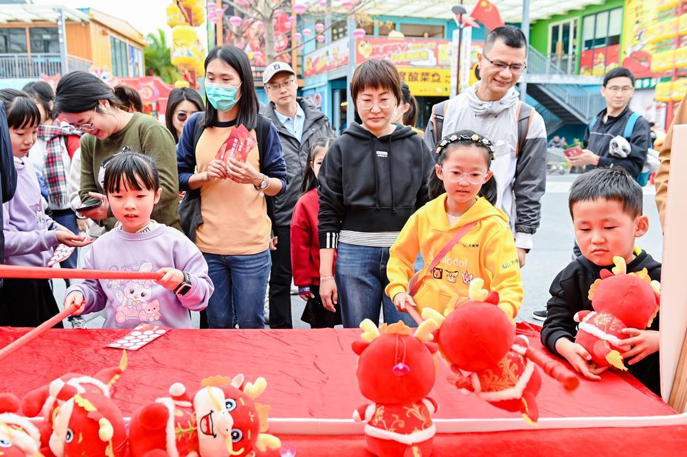 趣味游園游戲活動(dòng)由大橫琴集團(tuán)旗下的13家二級(jí)企業(yè)承辦,以“一企一特色、一家一品牌”為主調(diào),既有猜燈謎、剪窗花等民俗活動(dòng),也有數(shù)字華容道、幸運(yùn)射箭等現(xiàn)代游戲,煙火氣十足,又不乏文化味,為游客帶來了一場(chǎng)年味十足的節(jié)日盛宴?;顒?dòng)現(xiàn)場(chǎng)還引入了澳門美食攤位,不少市民及游客駐足攤位前品嘗地道澳門美食。