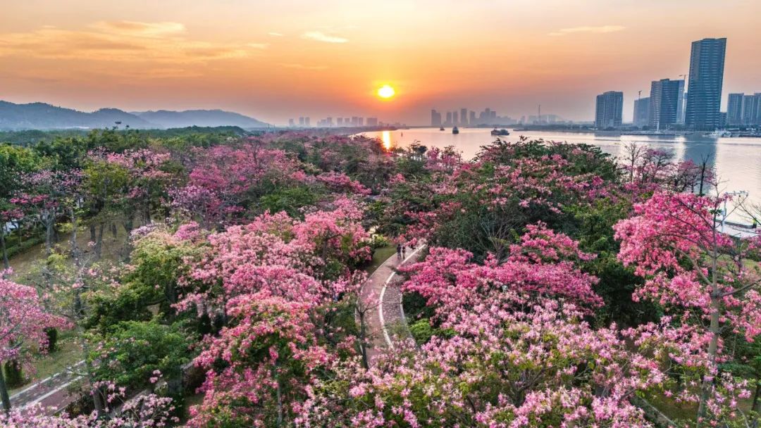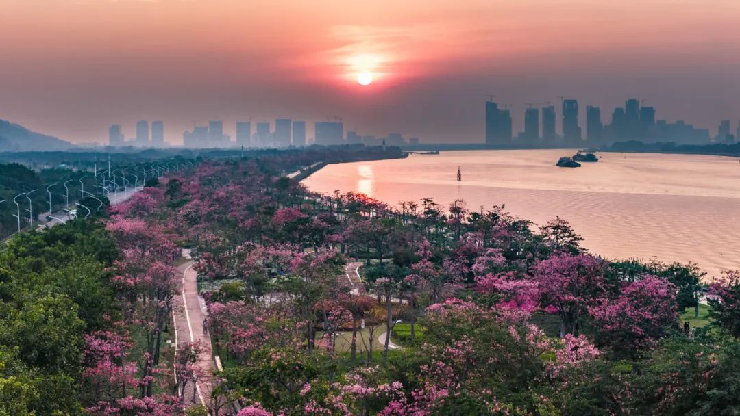 每年立冬前后,告別春夏雨季的橫琴花海長廊便迎來了她一年之中最美麗的季節(jié)——美麗異木棉盛花期。絢爛的粉色花海以飽滿、茂盛、茁壯的姿態(tài)展現(xiàn)在市民游客們面前,海岸四處洋溢著浪漫與溫馨。