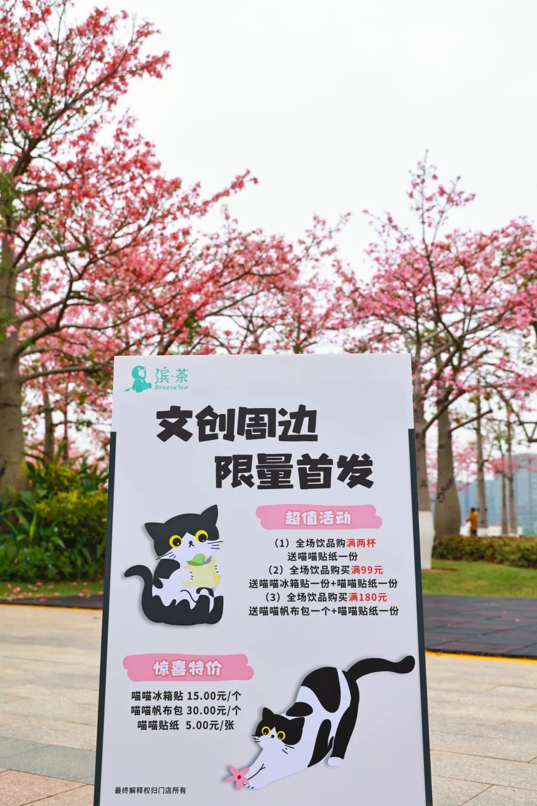 驛站自主品牌“濱·茶”更是與澳門高校學(xué)生設(shè)計(jì)工作室合作,聯(lián)手打造“貓店長”花期限定主題文創(chuàng),用萌寵為花海注入更多靈氣,讓游客在被大自然治愈之余,也享受到小動(dòng)物帶來的舒心。