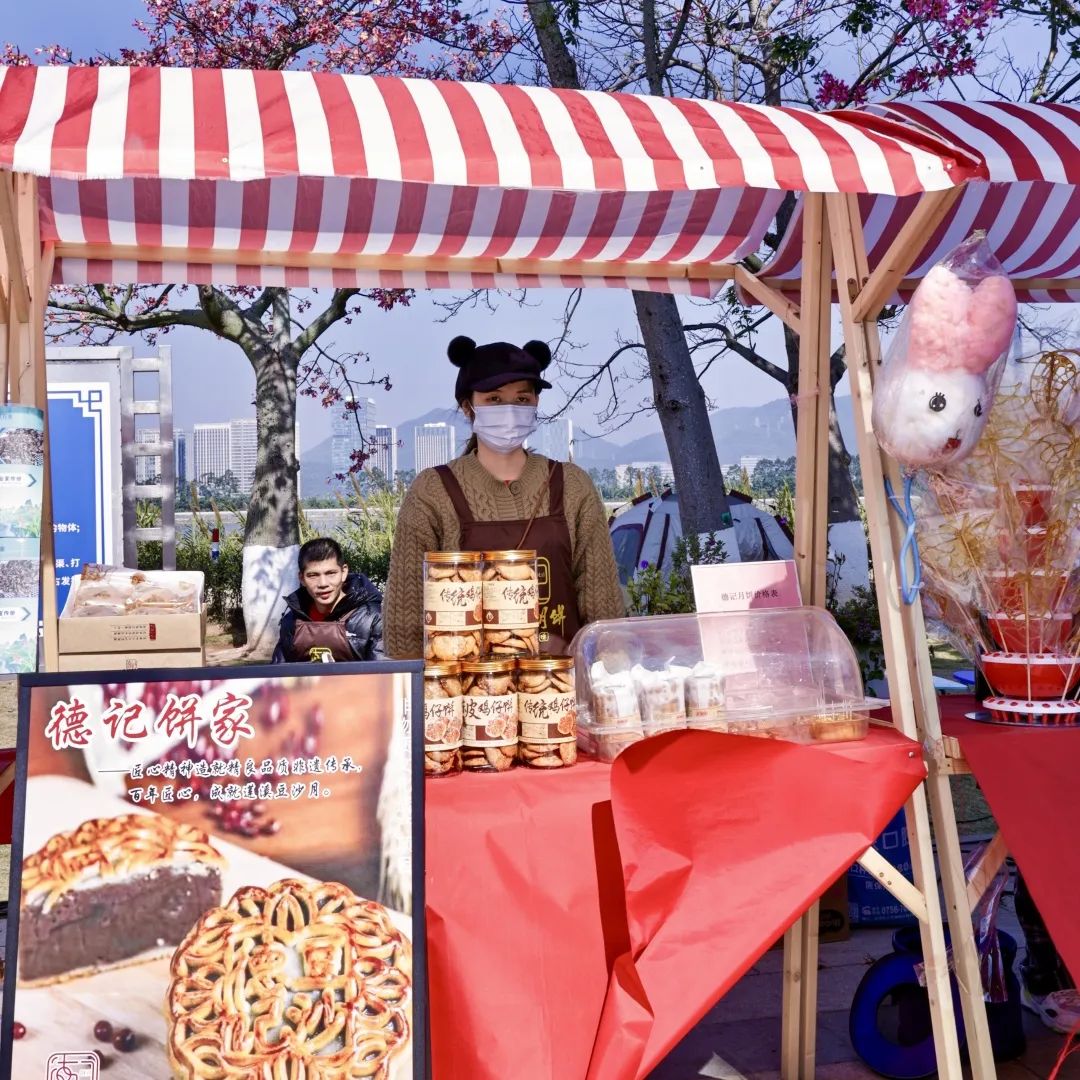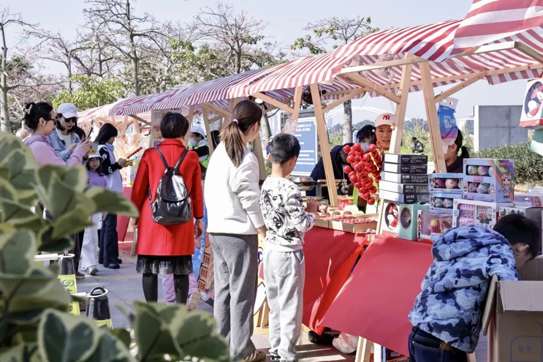 除此之外,每逢周末,一號(hào)、二號(hào)和三號(hào)驛站開展東灣墟市活動(dòng),斗門蓮洲鎮(zhèn)東灣村農(nóng)產(chǎn)品市集走進(jìn)花海,帶來優(yōu)質(zhì)的本地產(chǎn)綠色農(nóng)產(chǎn)品、特色手工糖水和農(nóng)副產(chǎn)品、非遺點(diǎn)心小吃等,吸引了大批市民游客上前詢問和購買。游客在享受美景、體驗(yàn)美食之旅的同時(shí),亦促進(jìn)了鄉(xiāng)村振興與滿足城鎮(zhèn)消費(fèi)需求的良性循環(huán),鄉(xiāng)村市集在花海煥發(fā)出了新活力。