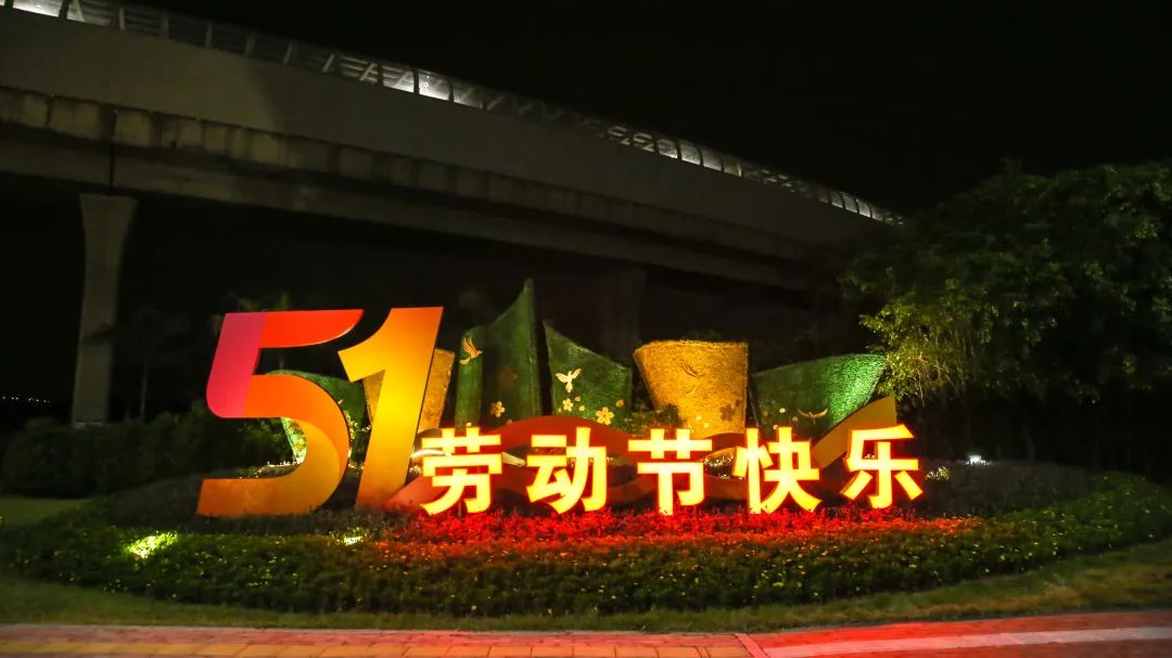 橫琴二橋市政綠地的造景則以 “51勞動節(jié)快樂” 為主題,精心搭配千日紅、木春菊等特色花卉,打造出繽紛絢麗的節(jié)日花境。這一抹亮色不僅為城市道路增添了靈動色彩,給過往的行人和車輛帶來視覺上的享受,同時(shí)也傳遞出對每一位辛勤勞動者的崇高敬意和美好祝福。